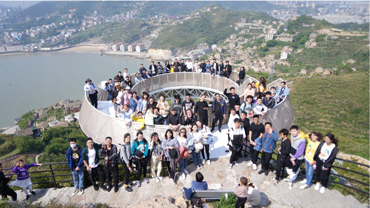 一個(gè)一個(gè)緊緊跟隨著,充滿著激情,一步一往上攀登,最終抵達(dá)綠道至高點(diǎn):網(wǎng)紅觀景臺(tái),并在這里留下勝利的笑影。海風(fēng)陣陣,吹干了路程中留下的汗水。站在最高點(diǎn)上放眼望去,著實(shí)有“一覽眾山小”的感覺。這讓大家感觸到,只有奮勇攀登,堅(jiān)持到底,才可一覽無限風(fēng)光!