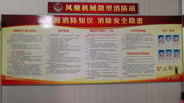 公司內(nèi)部設(shè)立微型消防站,配備專職消防人員,配齊具備的消防器材,定期對(duì)消防專職人員進(jìn)行消防安全知識(shí)、技能演練培訓(xùn),同時(shí)還配了小型消防車(chē),確保萬(wàn)無(wú)一失。