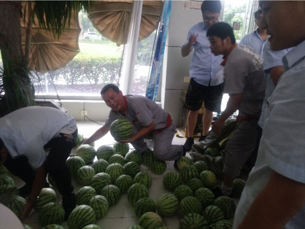 當天,隨著鎮(zhèn)工會運輸車的開進,企業(yè)各部門組織員工積極幫忙搬運,各個臉上洋溢著喜悅,大家一起幫忙將西瓜、飲品、防暑降溫等用品送達到員工手中,這意味著將公司的這份關(guān)懷傳遞到了員工們的心中,給炎炎夏日帶來了一縷清涼。