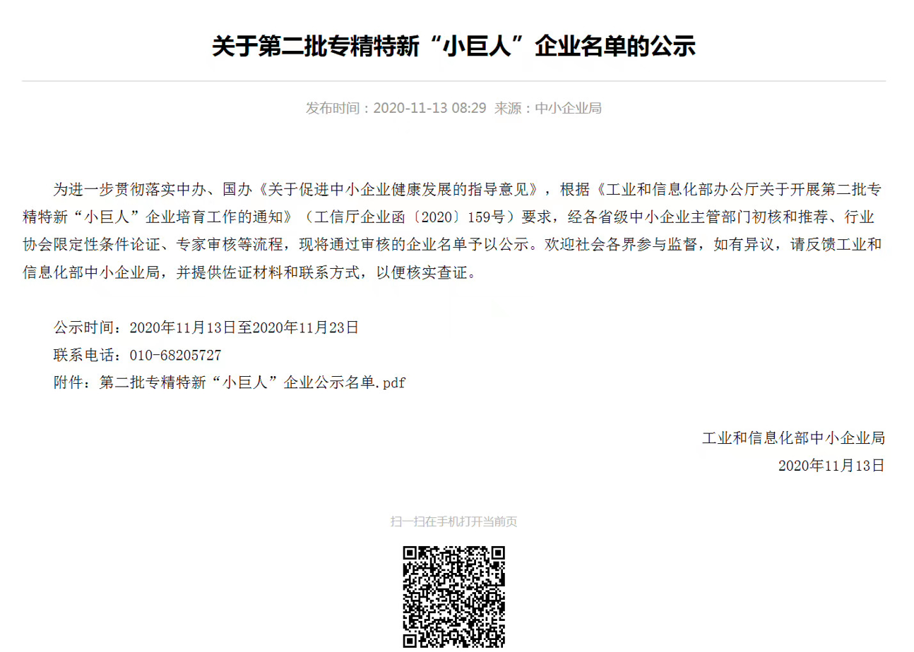 根據(jù)《關(guān)于組織推薦第二批國家級專精特新“小巨人”企業(yè)》文件通知要求,我司通過地方經(jīng)信推薦,符合申報要求,積極準備相關(guān)資料上報,經(jīng)各地經(jīng)信部門初審、市級相關(guān)部門會審以及省級專家評審,我司順利通過評審,成功入選“國家級專精特新“小巨人”名單,取得國家級榮譽。